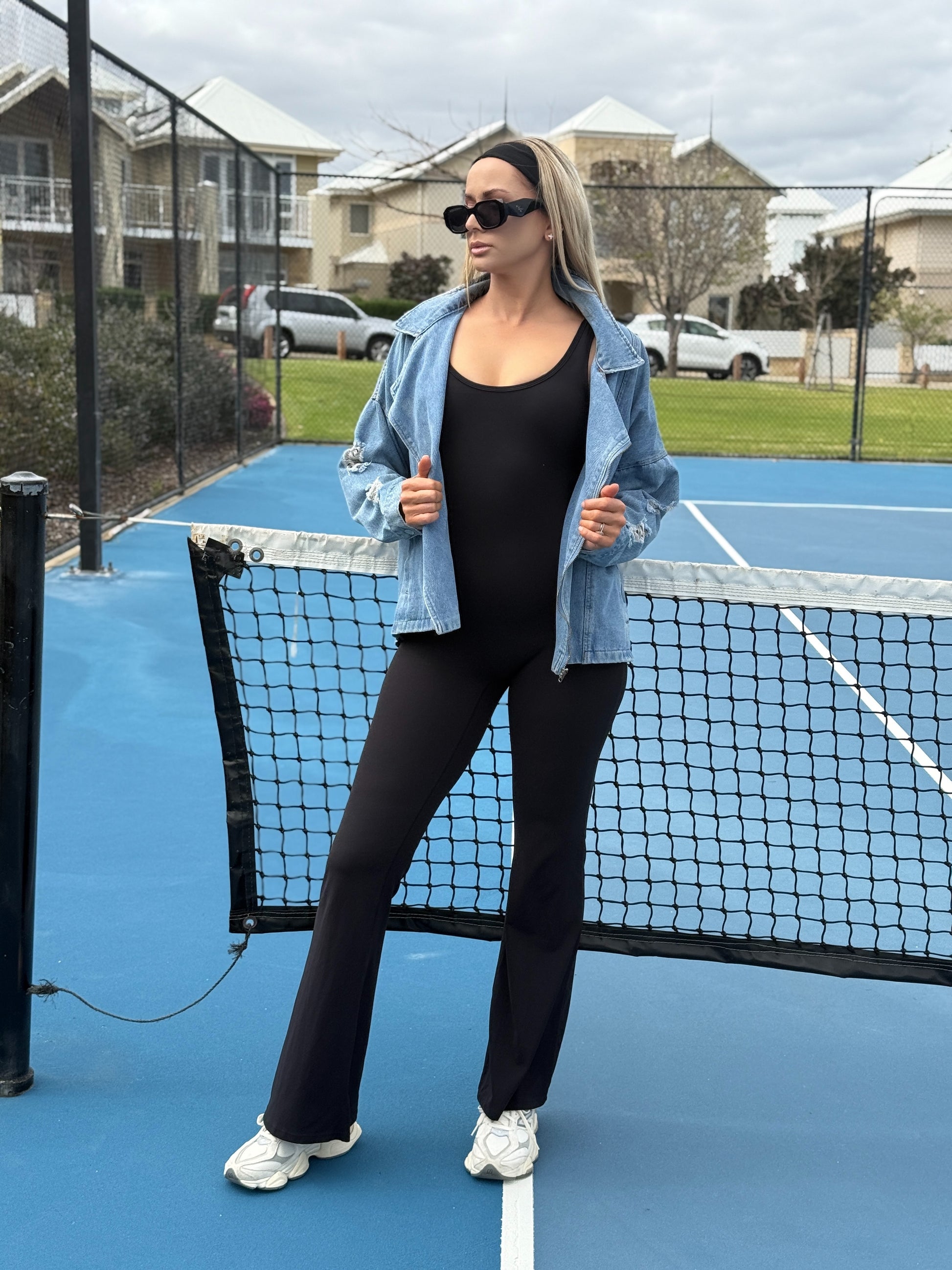 Our Comeback Denim Jacket in denim which is oversized for comfort also features a frontline zipper with two side pockets fashionable rips down the arms and back for extra style. Match with our Sweetpot Suede skirt.